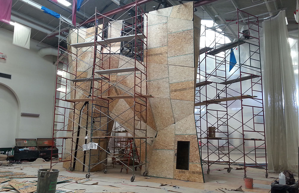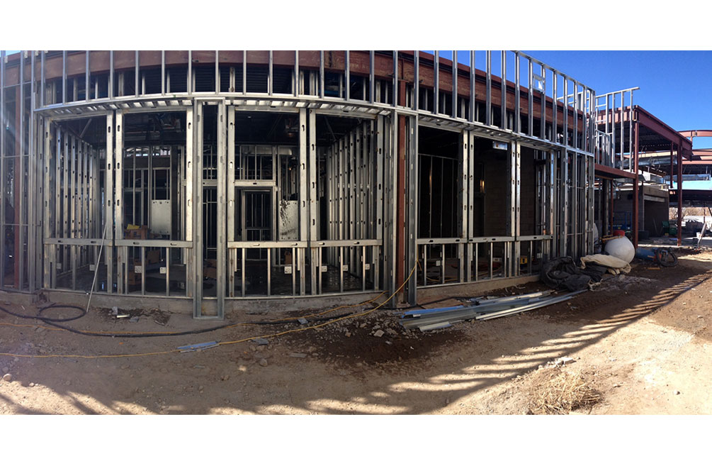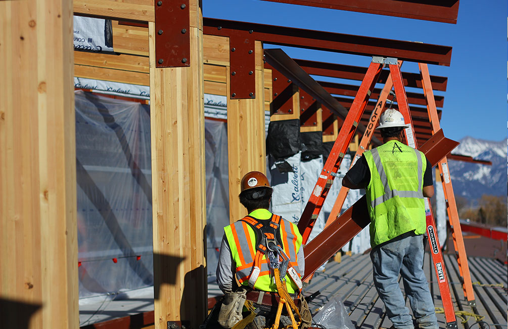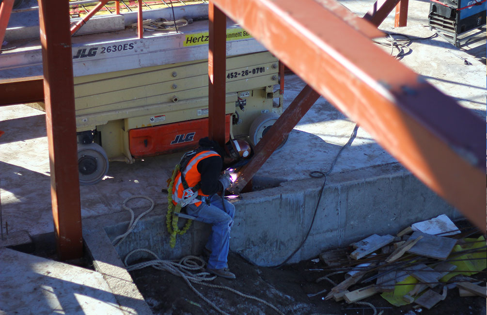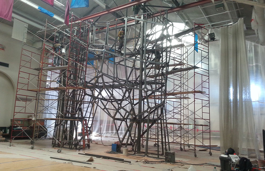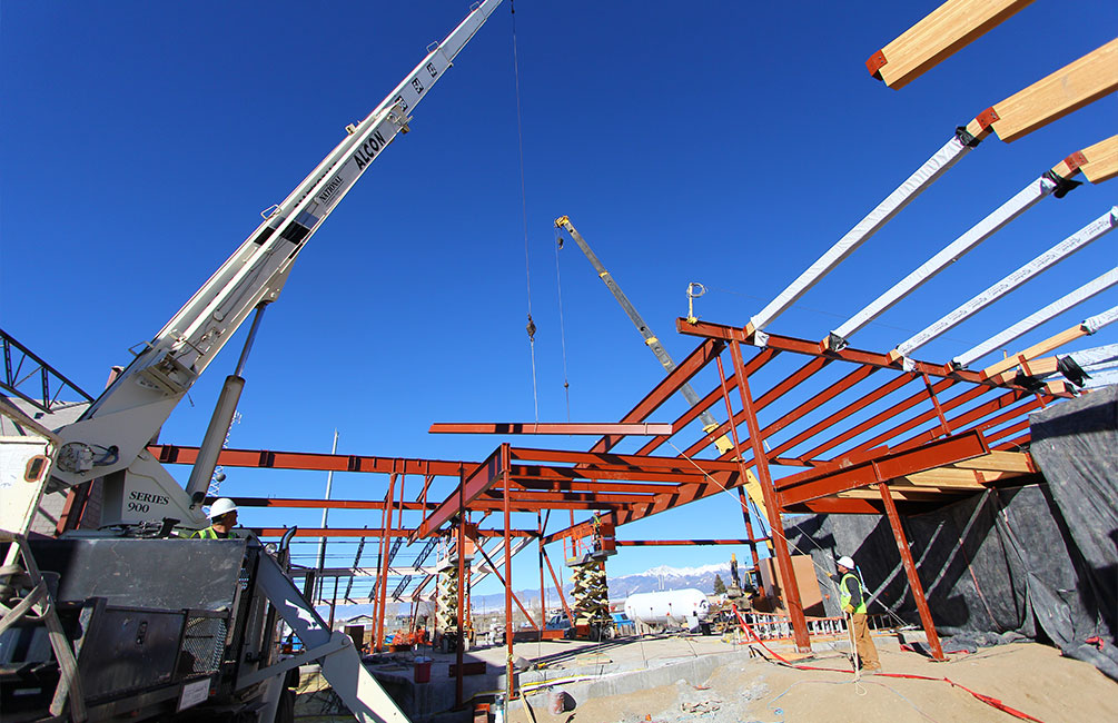 Erection of architecturally exposed structural steel, installing guard rail on stairs and custom wood glue laminate on exposed rafters.